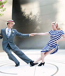 Born and raised in Santa Barbara, CA, Sarah grew up in the arts with a focus on dance. At home one night, 10 year old Sarah watched a documentary about a Swing Jazz legend, Frankie Manning, one of the original swing dancers. Sarah fell in love and begged her parents to take lessons. In her early 20's she was contacted by Dax Hock who was looking for a new dance partner. That call led her into a 5 year whirlwind romance where they have travelled the world dancing together and getting hitched. Dax and Sarah have performed on Dancing with the Stars, and were semi-finalist in Paula Abdul's Live to Dance.
