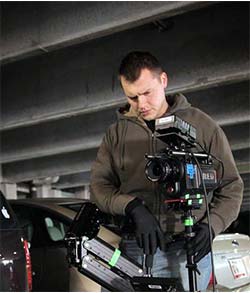 Hailing from central Kentucky, Lee Clements has had a camera in his hand since middle school, making claymation shorts and music videos. College gave him a degree to make it official, but he has spent years working out how cameras move, pick up light, and how these interact with storytelling. College also brought Lee together with director Gex Williams as roommates, and when Gex needed an eye for something different, Lee was the first one he called. As cinematographer, he helps to light and compose the shots, in a sequence that can best help the story the director wants to tell.
